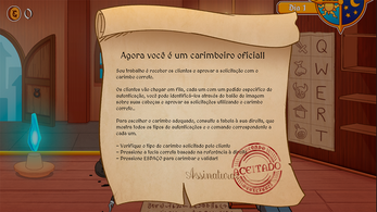 Após perder tudo em jogos de azar e ter seu gato levado como garantia de pagamento, você é obrigado a trabalhar como carimbeiro em uma guilda de aventureiros. Seu trabalho é garantir que cada solicitação tenha o carimbo de aprovação correto, e assim, pagar sua dívida e ter Bob o gato de volta.